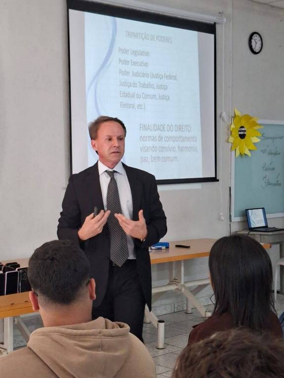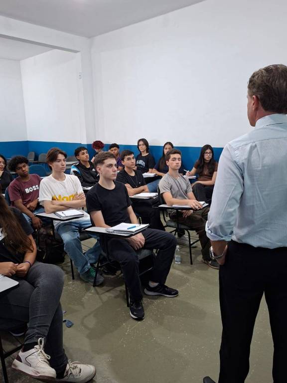 Com o tema “Carreira, Educação e Sustentabilidade – Desafios e Oportunidades para o Futuro”, o Dr. Battaglini apresentou de forma objetiva os principais desafios de quem está ingressando no mercado de trabalho, ressaltando a importância da qualificação contínua, da capacidade de adaptação e da responsabilidade socioambiental no contexto atual.